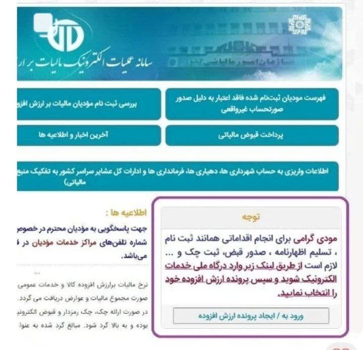 از این به بعد فقط از سامانه مای تکس (my.tax.gov.ir) امکان ارسال اظهارنامه ارزش افزوده خواهد بود.